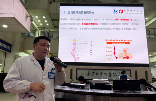 2026年4月15日至21日是第32个全国肿瘤防治宣传周,主题为“早防早筛早治 同心携手抗癌”。长沙市中心医院(南华大学附属长沙中心医院)肿瘤科于4月14日至15日,在医院门诊大厅及侯家塘街道社区举办食管癌专题科普讲座与义诊活动。通过真实案例解析预防要点和治疗手段,让防治知识深入人心。