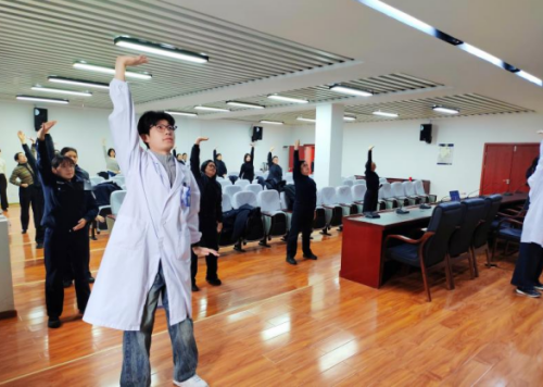 活动伊始,医务人员志愿者带领民警及职工们练习八段锦,通过锻炼,提高身体技能,扶助正气。