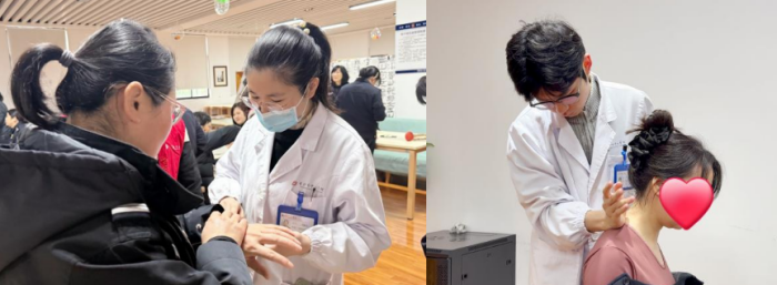 授课结束后,医护志愿者们为民警、职工提供了细致的中医体质辨识与健康咨询。耳穴压豆、穴位按摩等中医特色疗法体验区前排起了队伍,医护人员手把手指导关键穴位按压,帮助缓解疲劳紧张。