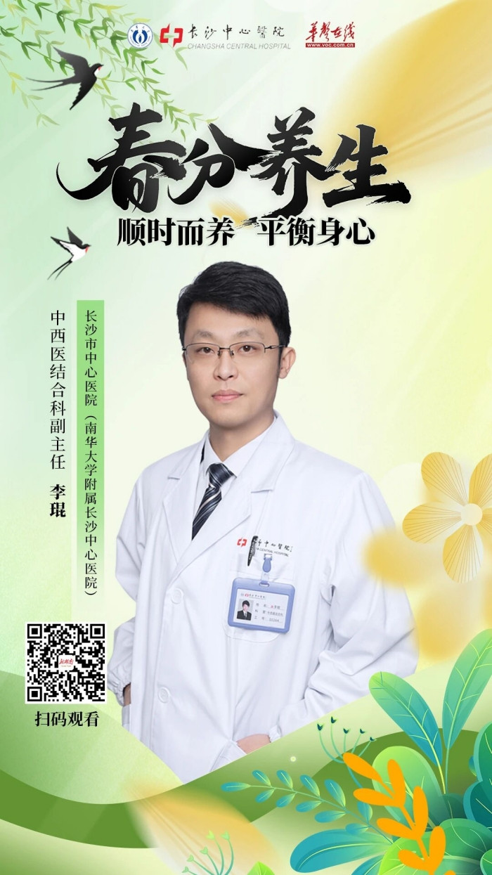3月20日,我们将迎来二十四节气中的春分。春分时节,昼夜平分,寒暑渐衡,正是调养身体、平衡身心的重要节点。为了帮助大家更好地顺应节气变化,掌握科学养生方法,我院中西医结合科李琨副主任将在华声在线直播间,与大家共同开启一场春分养生知识分享。本次直播将围绕“春分养生——顺时而养,平衡身心”这一主题,结合春季气候特点和人体状态变化,从饮食调理、起居作息、情绪疏导、常见不适预防等方面,为大家带来实用、易懂的健康指导。