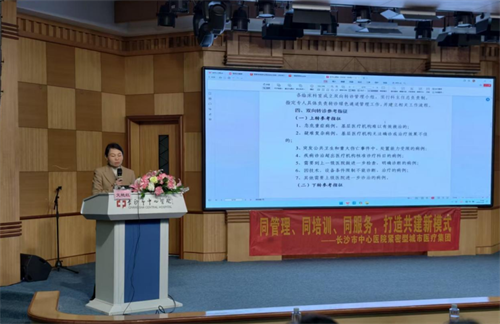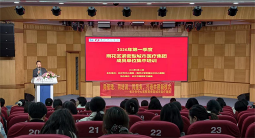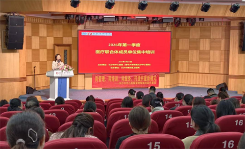 进一步夯实医联体建设根基,提升基层医疗机构诊疗服务能力,推动分级诊疗和双向转诊工作落地见效,3月26日下午,长沙市中心医院(南华大学附属长沙中心医院)联合长沙市雨花区卫健局,在医院健康管理中心一楼多功能厅举办2026年第一季度医联体成员单位业务培训。来自50余家合作单位190余名基层医疗同仁齐聚一堂,围绕“危急重症识别、延续性护理、消毒灭菌质控”三大基层高频难题,展开问题导向型学习。本次培训由医院医疗联合工作办副主任黄晶主持。